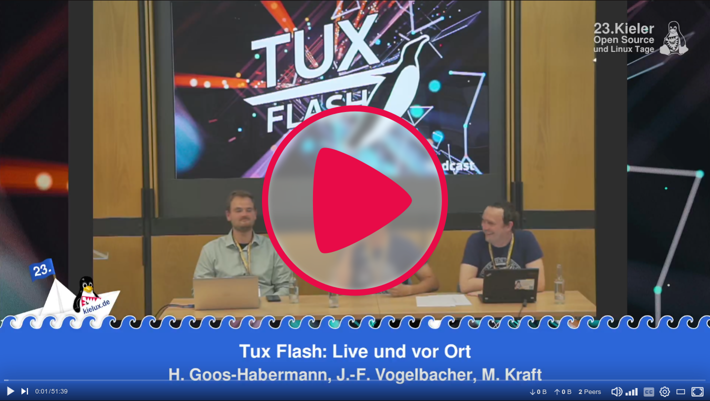 Wenn Ihr mehr darüber erfahren möchtet, was wir uns an weiteren Verbesserungen überlegen, könnt Ihr Euch auch die Aufzeichnung der Tux-Flash-Sendung mit der Kielux-Nachlese anschauen (PeerTube):